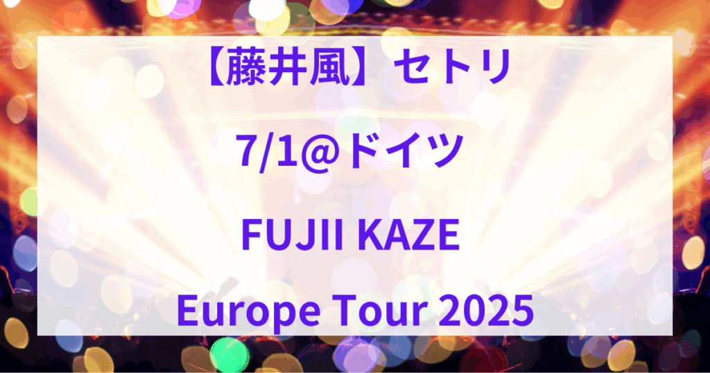 【藤井風】セトリ 7/1@ドイツ 『FUJII KAZE Europe Tour2025』
