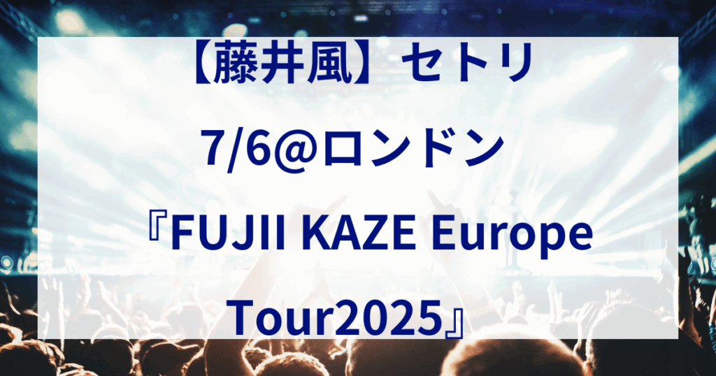 【藤井風】セトリ 7/6@ロンドン 『FUJII KAZE Europe Tour2025』