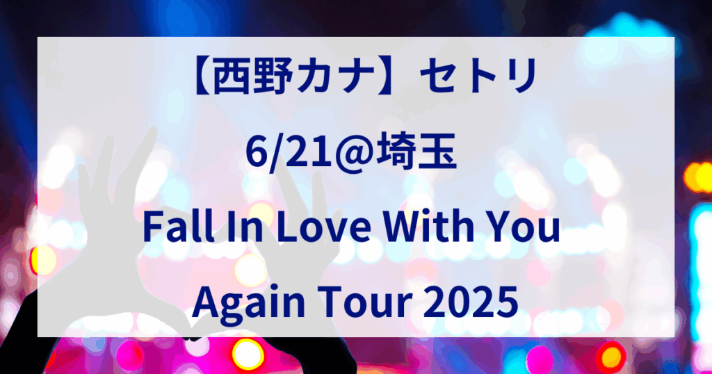 【西野カナ】セトリ 6/21 埼玉 Fall In Love With You Again Tour 2025