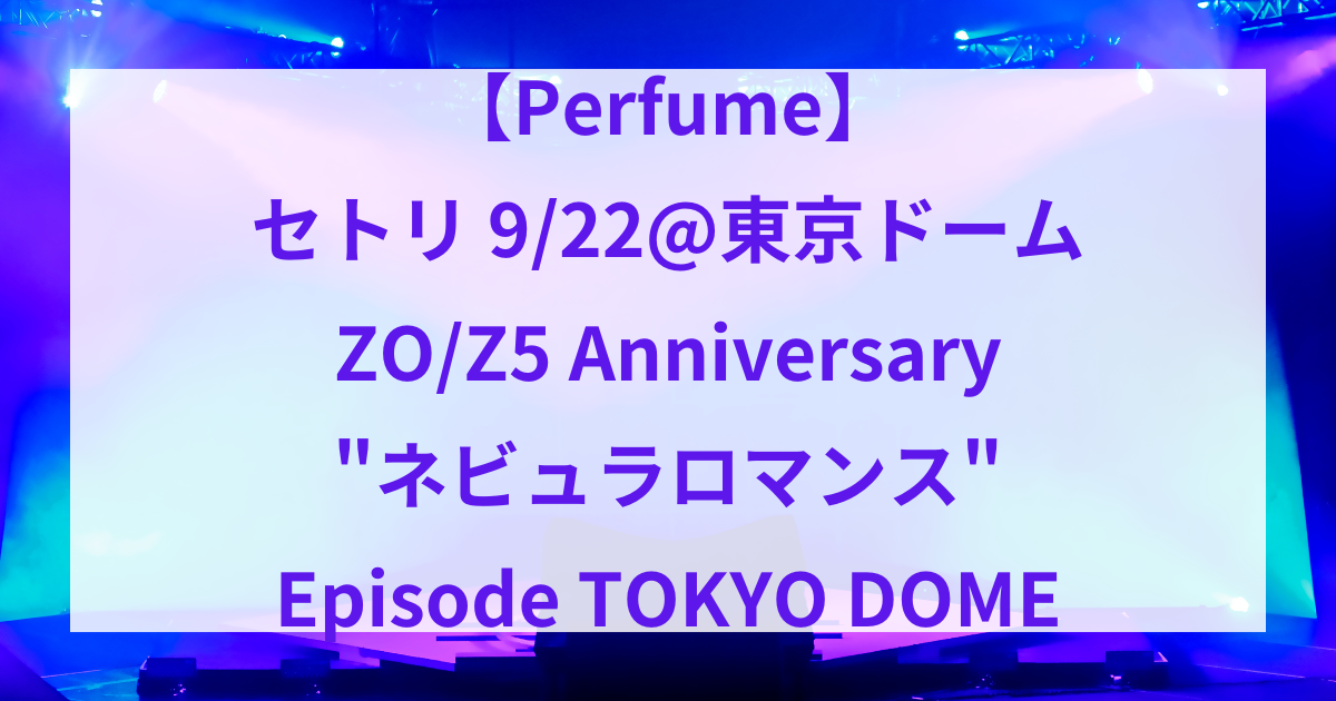 【Perfume】セトリ 9/22@東京ドーム ZO/Z5 Anniversary “ネビュラロマンス” Episode TOKYO DOME